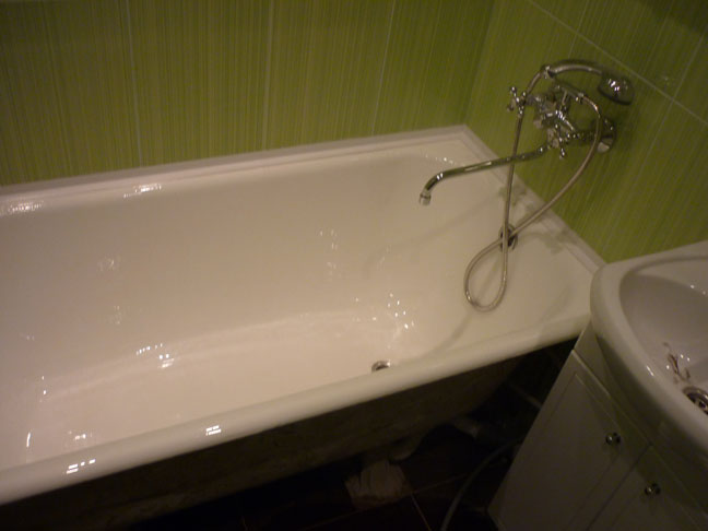 Белейшая ванна! Мы просто счастливы! Вкладыш треснул на дне. Хлюпала вода и стоял неприятный запах (((. Сейчас все хорошо. Спасибо вам большущее за работу. Вы профессионалы своего дела, мы очень довольны! Работа выполнена за 3,5 часа, качественно и без особого запаха. Желаем вам побольше довольных клиентов!!!
